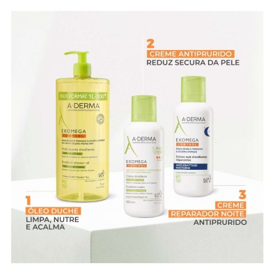 Aplicar o A-Derma Exomega Control Óleo Duche durante o banho, sobre a pele molhada. Massajar suavemente e enxaguar abundantemente. Secar delicadamente sem esfregar.