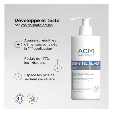 O ACM Sensitélial AD Creme 500ml foi desenvolvido para hidratar, nutrir e acalmar a pele seca e muito seca com tendência atópica, ajudando a reduzir a irritação e a coceira desde a primeira aplicação.