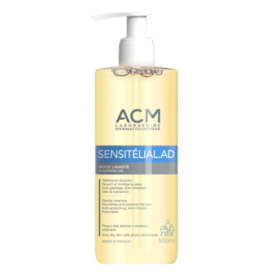 ACM Sensitélial AD Óleo Lavante limpa suavemente a pele, respeitando o equilíbrio cutâneo.