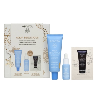 Apivita Aqua Beelicious Coffret Hidratação e Frescura é um conjunto composto por: 1 Apivita Aqua Beelicious Creme com Cor (40ml), 1 Apivita Aqua Beelicious Booster Sérum (10ml) e 1 Apivita Black Detox Gel de Limpeza (5ml).
