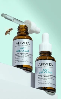 Apivita Just Bee Clear Sérum Anti-imperfeições Matificante ajuda a reduzir as imperfeições, a controlar a oleosidade e a matificar a pele, proporcionando um acabamento suave e sem brilho.