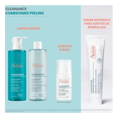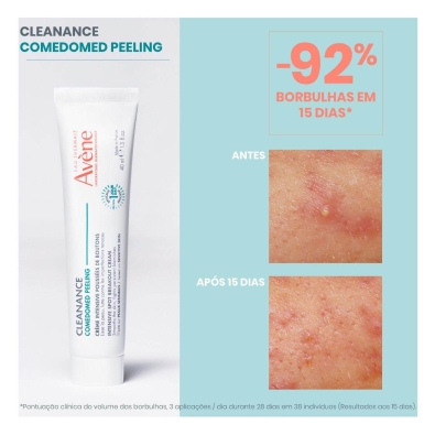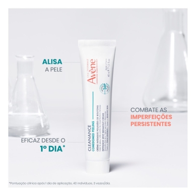 Formulado com ingredientes ativos de alta tolerância, Avène Cleanance Comedomed Peeling reduz visivelmente a aparência de imperfeições, melhorando a textura da pele.