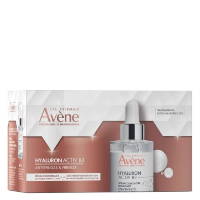 O Coffret Avène Hyaluron Activ B3 é composto por: 1 Avène Hyaluron Activ B3 Sérum Concentrado Preenchimento (30ml), Avène Água Micelar Desmaquilhante (100ml) e Avène Bolsa Necessaire Exclusiva.