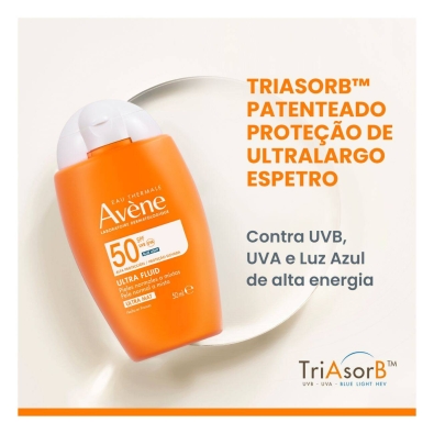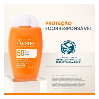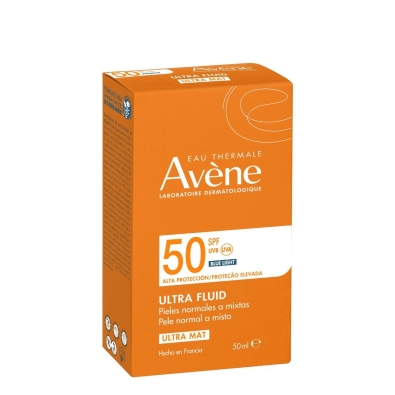 Com proteção de alto espectro UVA e UVB, Avène Solar Fluido Ultra-Mat FPS50 protege a pele deixando-a com um acabamento mate ao mesmo tempo que controla o brilho em excesso.