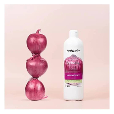 Babaria Shampoo Antioxidante de Cebola utiliza os benefícios tradicionais da cebola num formato moderno e cosmético sem odor.