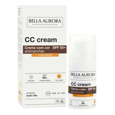 O Bella Aurora CC Cream Creme Corretor Antimanchas Tom Médio SPF 50+ combina cuidado e correção num só gesto.