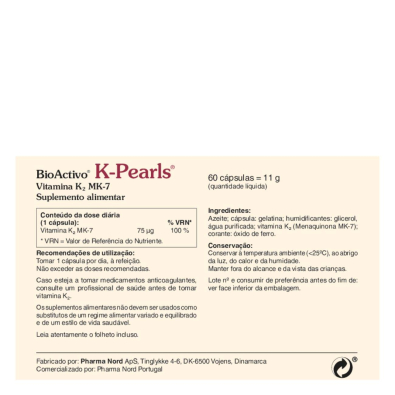 As BioActivo K-Pearls Cápsulas 60un. auxiliam na manutenção de uma estrutura óssea saudável e apoiam a coagulação sanguínea normal.