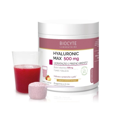 Formulado com ácido hialurónico, Biocyte Hyaluronic Max favorece a elasticidade da pele e atenua as linhas de expressão e as rugas, de forma natural.