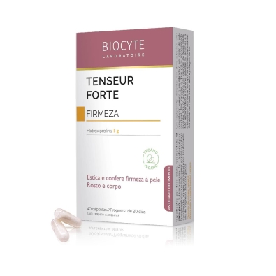 Biocyte Tenseur Forte é um suplemento alimentar indicado para aumentar a firmeza da pele do rosto e corpo.