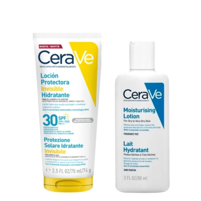 Aplique a Loção Protetora Invisível Hidratante SPF30 de manhã, antes da exposição solar. Reaplique a cada 2 horas e após nadar ou transpirar. Utilize a CeraVe Loção Hidratante oferecida como parte da promoção diariamente, após o banho ou sempre que a pele necessitar de hidratação.