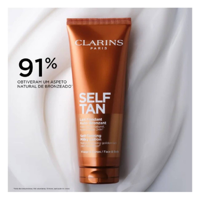Clarins Lait Fondant Auto-Bronzant Leite Autobronzeador proporciona um bronzeado gradual, natural e uniforme, sem necessidade de exposição solar.