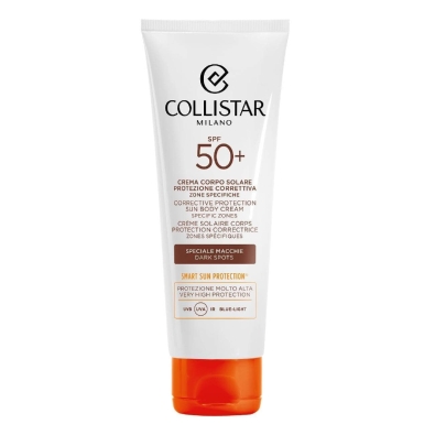 Especialmente desenvolvido para prevenir e tratar manchas solares, o Protetor Solar Corporal Antimanchas FPS50+ Collistar Corrective Protection oferece uma proteção muito alta e de amplo espectro (UVA-UVB-IR e luz azul).