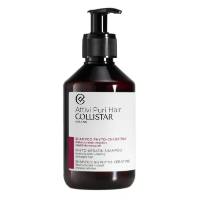 Collistar Phyto Keratin Shampoo Intensivo Reestruturador proporciona uma limpeza suave e eficaz, promovendo a reestruturação e reparação da fibra capilar.