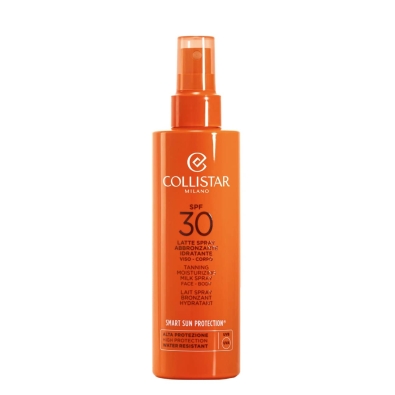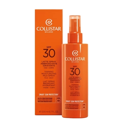 Ideal para quem procura um bronzeado saudável e duradouro, o Collistar Tanning Moisturizing SPF30 Leite Spray é indicado para todos os tipos de pele.