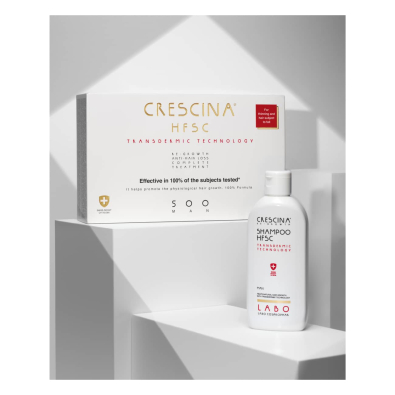 Crescina HFSC Transdermic Tratamento Completo para Homem estimula o crescimento capilar, fortalece os folículos pilosos e previne a queda de cabelo.
