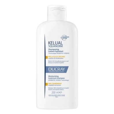 Ducray Kelual-Squanorm Shampoo elimina a caspa seca do couro-cabeludo.
