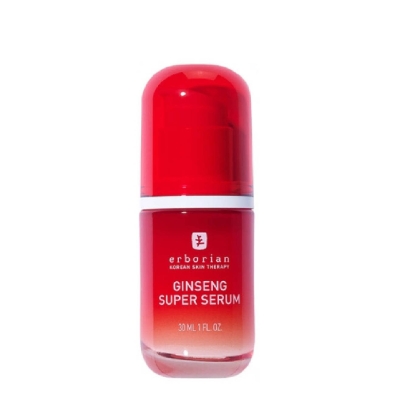 A combinação do Complexo de Ginseng com péptidos e Ácido Hialurónico confere um efeito alisante e tensor, reduzindo o aspeto de linhas e rugas. Erborian Ginseng Super Sérum é um sérum ultra-sensorial, com 90% de ingredientes de origem natural, envolve a pele numa bolha de conforto, preservando o equilíbrio e a hidratação cutânea.