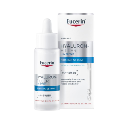 Eucerin Hyaluron-Filler 3x Effect Sérum Efeito Lifting e Firmeza proporciona um efeito lifting imediato, preenchendo as rugas e melhorando a firmeza da pele.