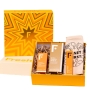 Freshly Coffret Essenciais Rosto e Corpo Pele Luminosa é composto por: Freshly Golden Radiance Óleo Corporal (100ml), Freshly Vitamin C Sérum Concentrado (30ml), Freshly Golden Dream Óleo Labial (5ml) e bolsa de oferta.
