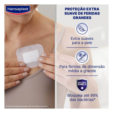 Hansaplast Sensitive Pensos XL foi especificamente desenvolvido para proporcionar uma barreira protetora eficaz em cortes, arranhões e feridas pós-operatórias.
