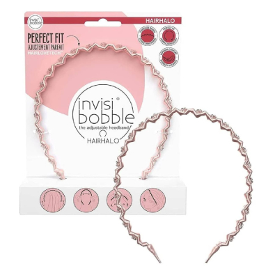 A Hairhalo Pink Sparkle invisibobble garante que o seu cabelo se mantém impecável durante todo o dia, prevenindo as marcas de uso e as dores de cabeça.