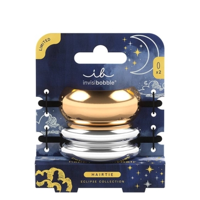 Com detalhes metálicos radiantes, Invisibobble Hairtie Eclipse Aurora traz um toque celestial refinado ao seu visual, sendo perfeito para coques e rabos de cavalo.