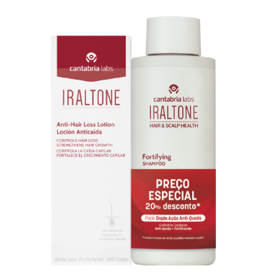 O Iraltone Pack Shampoo Fortificante + Loção Anti-Queda é composto por: Iraltone Shampoo Fortificante (200ml) e Iraltone Loção Anti-Queda (100ml).