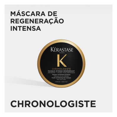 Com uma fórmula altamente nutritiva, Kérastase Chronologiste Masque Intense Régénérant regenera profundamente a fibra capilar, ao mesmo tempo que fortalece e suaviza o cabelo desde a raíz até às pontas.