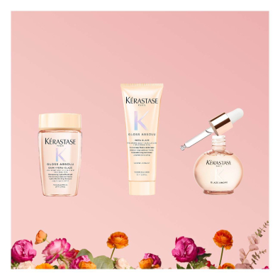 Com fórmulas polidoras, Kérastase Gloss Absolu Trio Óleo Capilar Brilho suaviza a cutícula, hidrata intensamente e alinha a fibra capilar.
