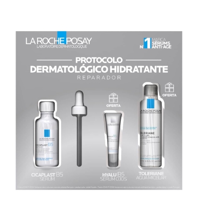 O La Roche-Posay Cicaplast Coffret é composto por: 1 La Roche-Posay Cicaplast B5 Sérum Reparador (30ml), 1 La Roche Posay Toleriane Água Micelar Pele Reativa (50ml) e 1 La Roche-Posay Hyalu B5 Sérum Olhos (5ml).
