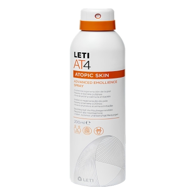 Ideal para pele sensível, irritada ou propensa a coceira, o LETIAT4 Advanced Emollience Spray, com glicerina, óleos vegetais, manteiga de karité e extratos vegetais, regenera a pele, restaura a barreira cutânea, acalma irritações e reduz o risco de superinfecção, deixando a pele confortável, suave e protegida.