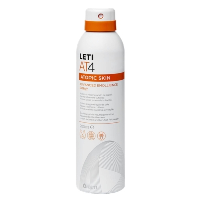 Ideal para pele sensível, irritada ou propensa a prurido, Leti AT4 Advanced Emollience Spray regenera, restaura a barreira cutânea e acalma irritações, deixando a pele confortável, suave e protegida.