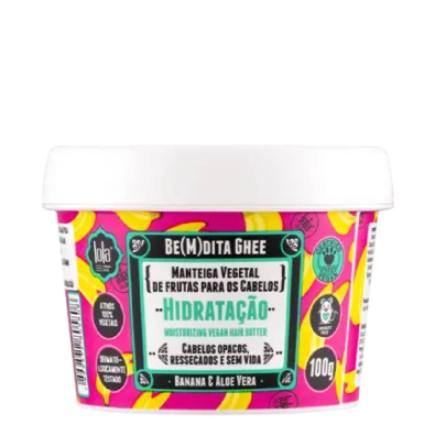 Lola Be(M)dita Ghee Máscara Capilar Hidratante Banana e Aloe Vera proporciona nutrição e hidratação intensas aos fios.