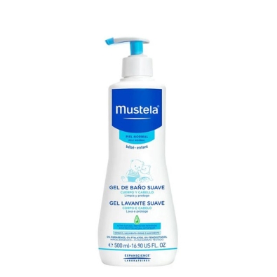 Mustela Gel Lavante limpa suavemente a pele e couro cabeludo delicado do bebé.