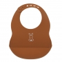 Nattou Babete de Silicone Ajustável é um babete de silicone que se ajusta no pescoço para acompanhar o crescimento dos bebés. Indicado a partir dos 6 meses. Cor tijolo.