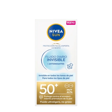 O protetor solar Nivea Fluido UV Rosto Diário Invisível SPF50+ oferece proteção imediata contra os raios UVA/UVB e a luz visível de alta energia, ajudando a prevenir o envelhecimento prematuro da pele.