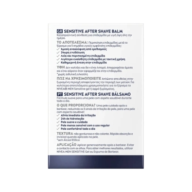 Nivea Men Sensitive After Shave Bálsamo proporciona alívio imediato após o barbear, prevenindo irritações e vermelhidão.