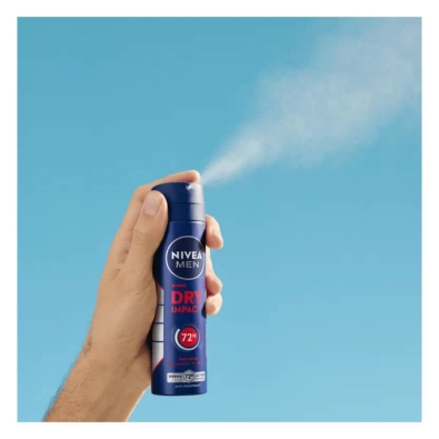 Nivea Men Dry Impact Desodorizante proporciona uma proteção eficaz contra a transpiração e o odor durante 48 horas.