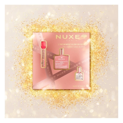 Nuxe Coffret Glow Huile Prodigieuse OR Florale 2025 é um conjunto composto por: 1 Nuxe Huile Prodigieuse OR Florale (50ml), 1 Nuxe Huile Prodigieuse Florale (10ml) e 1 Nuxe Very Rose Plumping Lip Serum (8ml).