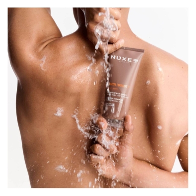 Nuxe Men Boost Gel Duche 3 em 1 é formulado com uma base lavante vegetal que respeita o pH da pele masculina.