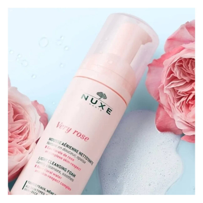 Nuxe Very Rose Duo Espuma de Limpeza limpa suavemente a pele, removendo impurezas e maquilhagem, deixando-a fresca e confortável.