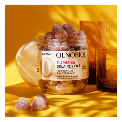 Com um sabor delicioso, Oenobiol Gummies Solar 2 em 1 ajudam a preparar a pele para a exposição solar, proteger contra o stress oxidativo e promover um bronzeado progressivo e luminoso.