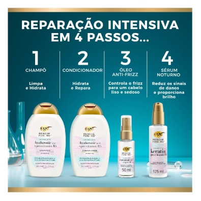 Com elevada tolerância e resultados visíveis, o Condicionador OGX Rescue Fusions entrega brilho, suavidade e vitalidade aos fios.