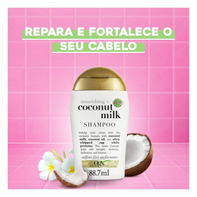 Ideal para cabelos secos e danificados, o OGX Nourishing Coconut Milk Shampoo ajuda a restaurar a saúde e a vitalidade dos fios.