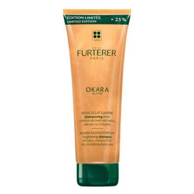 René Furterer Okara Blond Shampoo Iluminador realça o brilho e a luminosidade dos cabelos loiros, neutralizando os tons amarelados indesejados.
