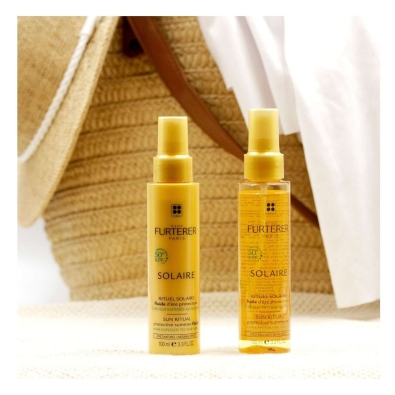 Rene Furterer Solaire Spray Fluido é um fluido protetor, indicado para proteger e hidratar os cabelos sensibilizados pela exposição solar.