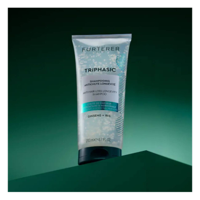 Rene Furterer Triphasic Shampoo é um shampoo fortificante, indicado para atenuar a queda do cabelo.