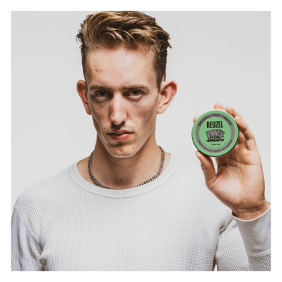 A Reuzel Green Pomade Medium Hold Grease permite modelar o cabelo com facilidade, proporcionando controlo flexível e brilho natural.