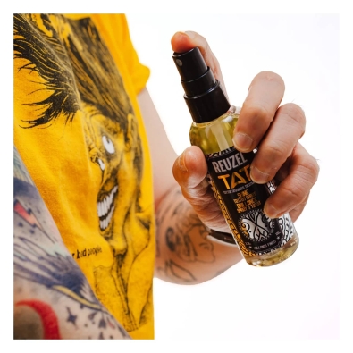 Ideal para realçar e proteger as tatuagens, o Reuzel Tat Shine Spray Iluminador de Tatuagens é perfeito para eventos especiais e para manter as tatuagens com um aspeto vibrante.