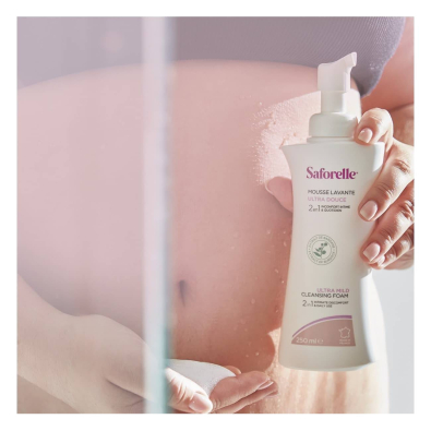 Saforelle Espuma Limpeza protege o equilíbrio natural da pele e pode ser utilizado por grávidas.
